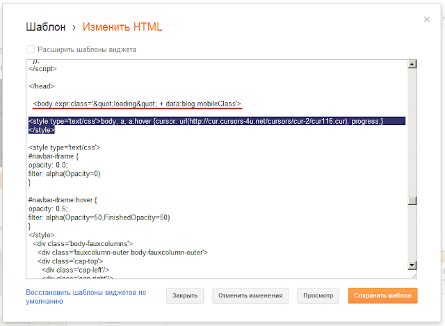 можносменить стандартный курсор стрелку на другой по вашему вкусу в Blogger. Советую подойти к выбору курсора с